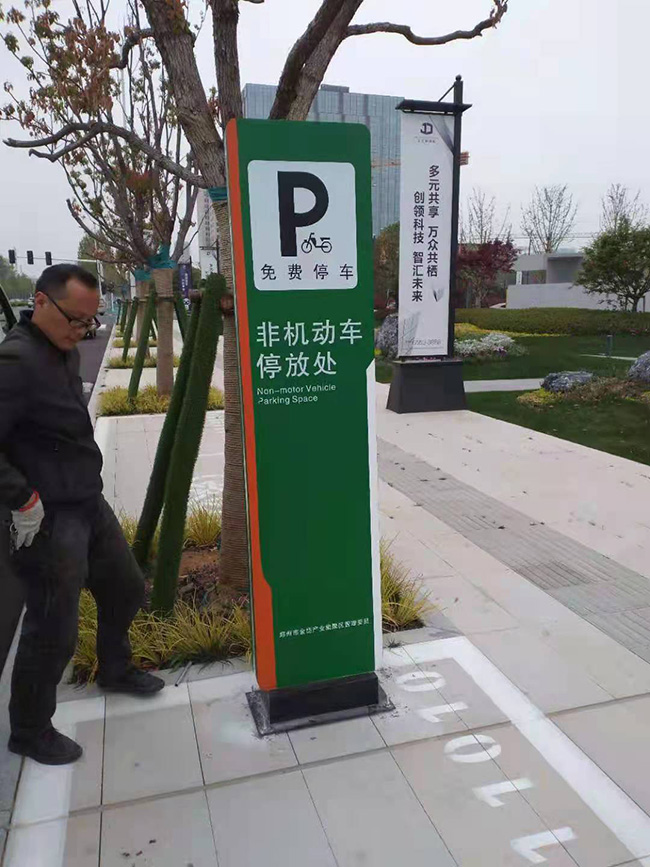 圖為停車標(biāo)識牌安裝現(xiàn)場: