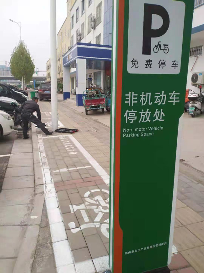 4月13日上午,管城區(qū)金岱路街道停車標(biāo)識牌開始安裝。