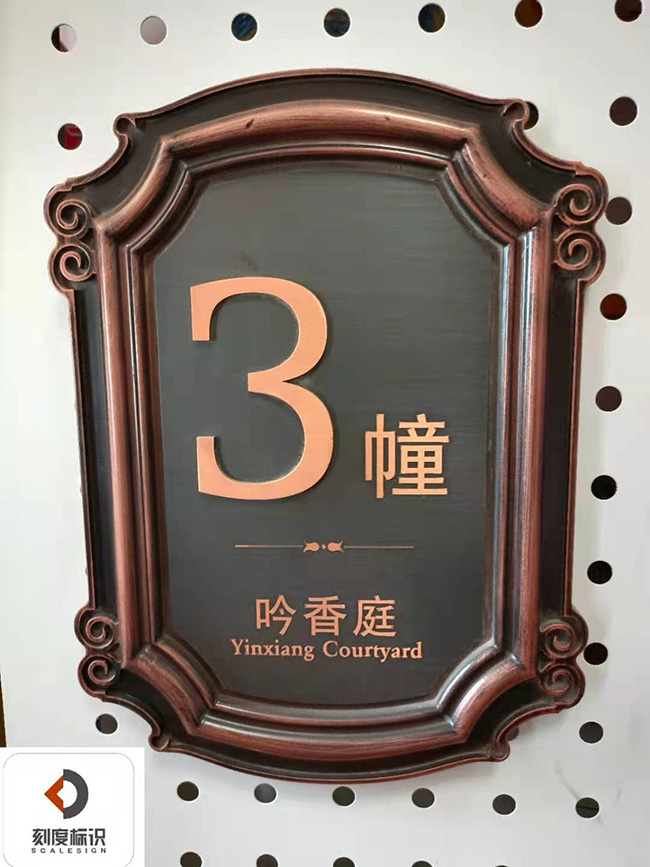 門牌的制作材料一般有不銹鋼、亞克力、鋁板、PVC、銅板等,相比之下,高檔樓盤門牌選擇銅板類比較多。