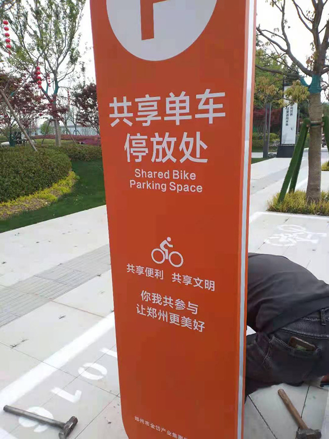 4月13日上午,管城區(qū)金岱路街道停車標(biāo)識(shí)牌開始安裝。