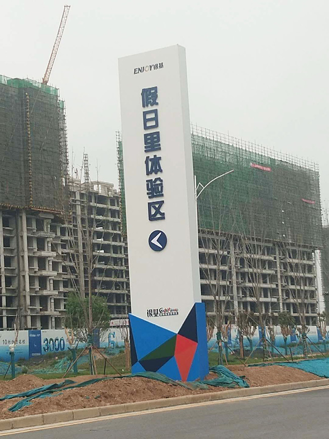 首先,體量大。精神堡壘的尺寸一般都在10米以上,它屬于導視廣告標識,作為企業(yè)文化形象的精神象征,不僅代表了企業(yè)的文化面貌、發(fā)展訴求,更是體現(xiàn)了企業(yè)的基礎、根基、大本營。因為精神堡壘高大上,在視覺受眾上范圍廣,我們經(jīng)常能看到售樓部或者商業(yè)廣場中間豎立著大型精神堡壘,意義就在于此,如萬達廣場,遠遠就能看到,這就是它的獨特作用。